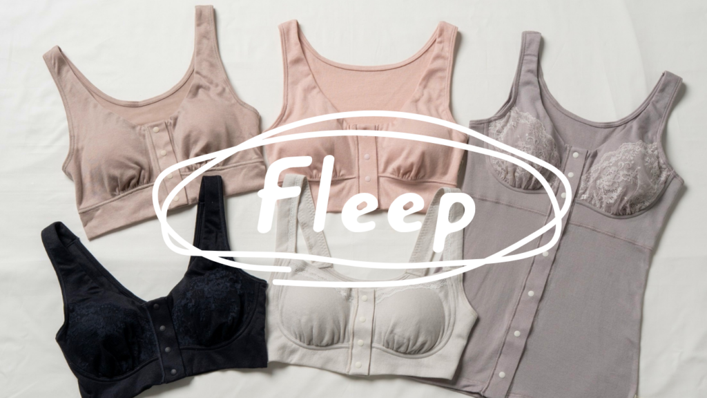Fleep(フリープ)さんは、肌触りがよく締めつけ感の少ない着心地で、下着によるストレスから心と身体を解放したいという想いで生まれたインナーブランドです。腕や肩への負担に配慮した前あきブラも取り扱っており、術後や治療中の通院時にも無理なく着用できます。「着ていただく方のことを想って作る」姿勢を大切にし、企画から縫製・出荷まで日本国内の工場で丁寧に生産されています。
